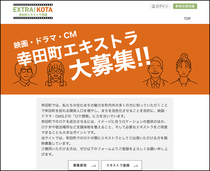 幸田町でのロケにあたり、エキストラが必要な際に募集のメールを送らせていただきます。
